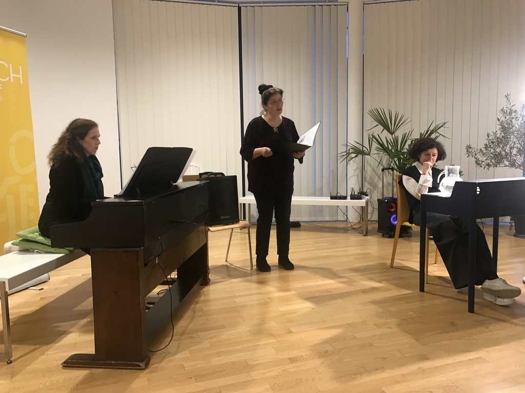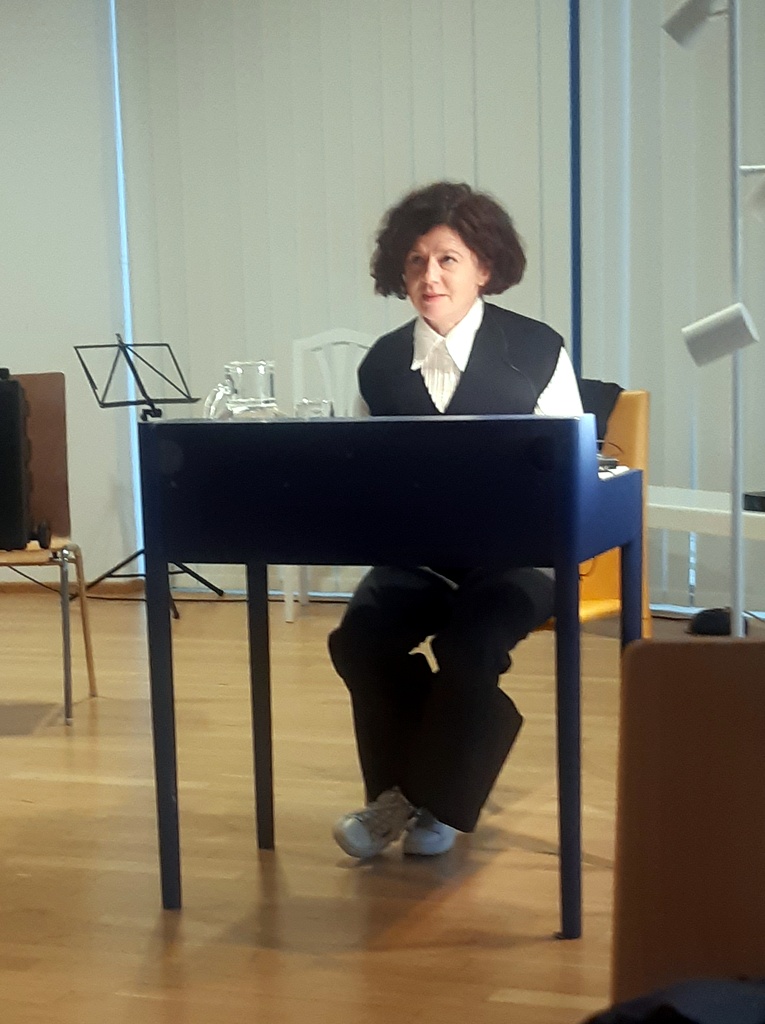 Die in Wien lebende und aus Oberösterreich stammende Schriftstellerin trug aus ihrem zuletzt erschienenen Buch „Mitten im Tag“ den Gesang der Frösche und „Zuhause“ vor. Passend dazu gab es Cello- Flöten- und Klaviermusik, sowie Gesang unter der Leitung von FL MMag. Barbara Sommerbauer und FL Mag. Martina Glatz.